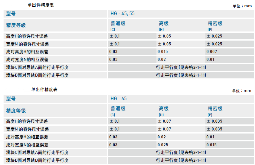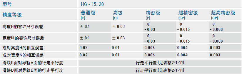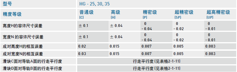 HG系列直線導(dǎo)軌的精度,分為普通、高、精密、超精密、超高精密級(jí)共五級(jí),客戶(hù)可依設(shè)備精度需求選用精度。