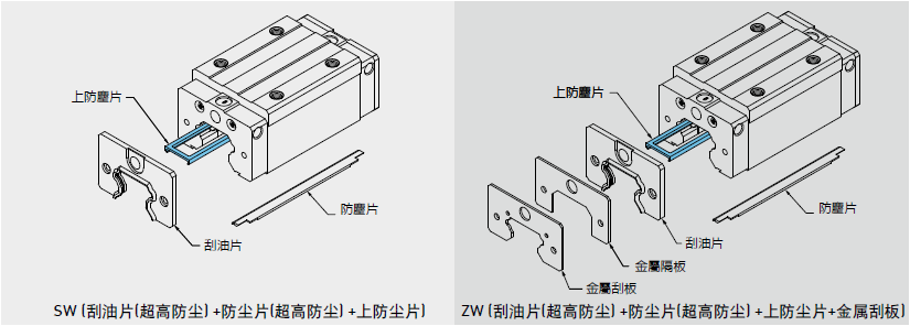 阻止加工鐵屑或塵粒進入滑塊里面,破壞珠道表面而降低直線導軌壽命。