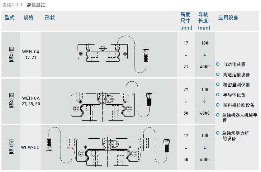 HIWIN提供法蘭型及四方型兩種直線導軌。