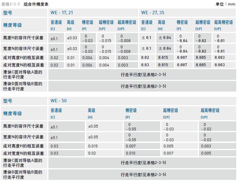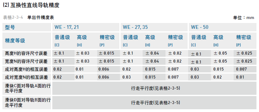 WE系列直線導軌的精度,分為普通、高、精密、超精密、超高精密級共五級,客戶可依設(shè)備精度需求選用精度。