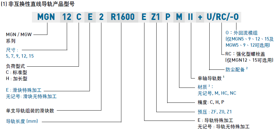(1) 非互換性直線(xiàn)導(dǎo)軌產(chǎn)品型號(hào)