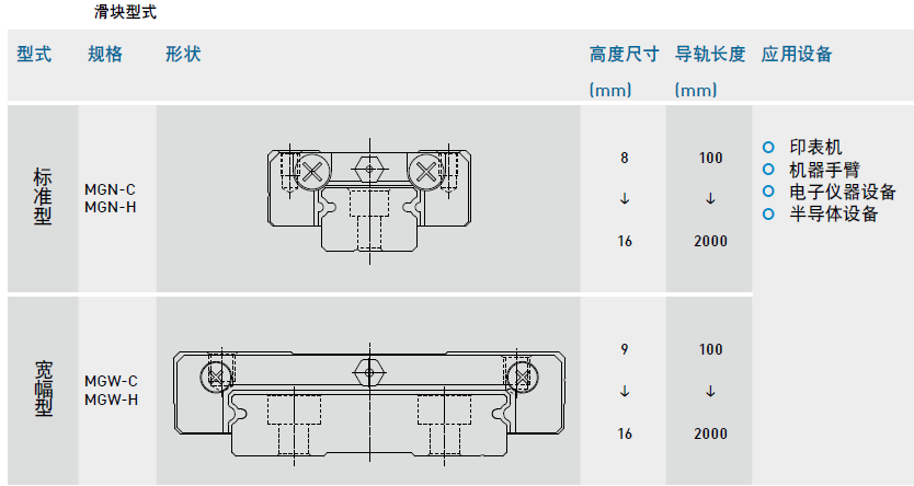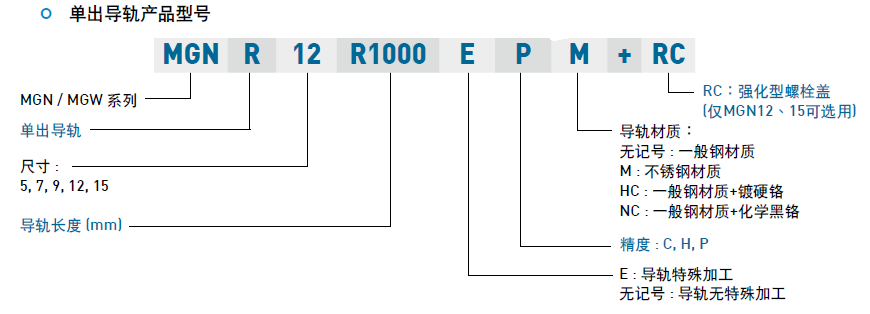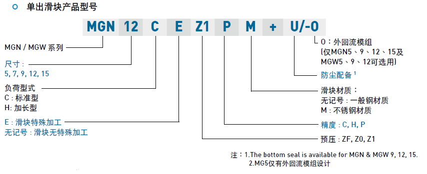 直線(xiàn)導(dǎo)軌MG系列的命名規(guī)則及型號(hào)